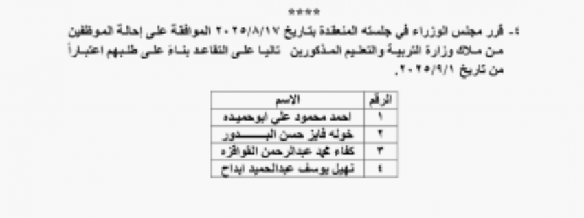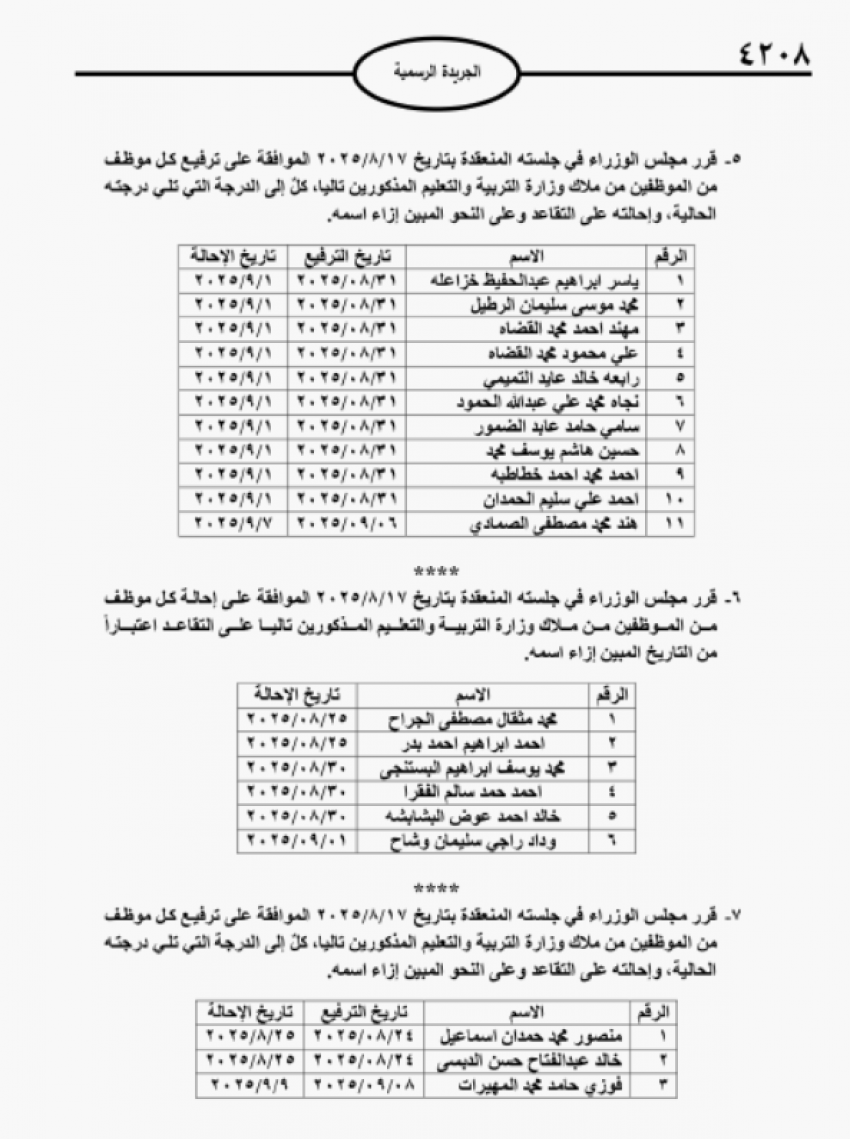 صدرت في عدد الجريدة الرسمية اليوم السبت، قرارات مجلس الوزراء بإحالات موظفين إلى التقاعد وإنهاء خدمات آخرين.