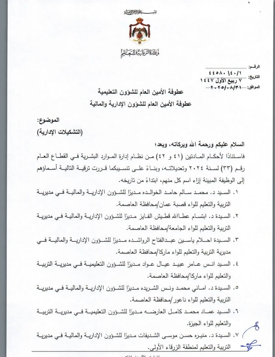 85072-- ترقيات وتعيين مدراء جدد في التربية .. أسماء :: صوت عمان الإخباري