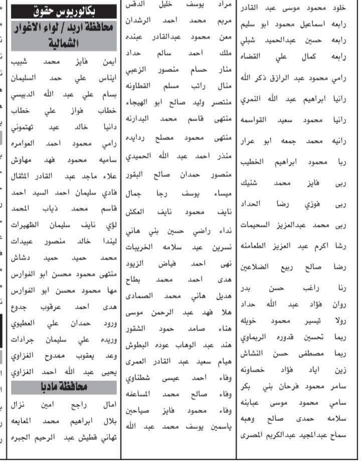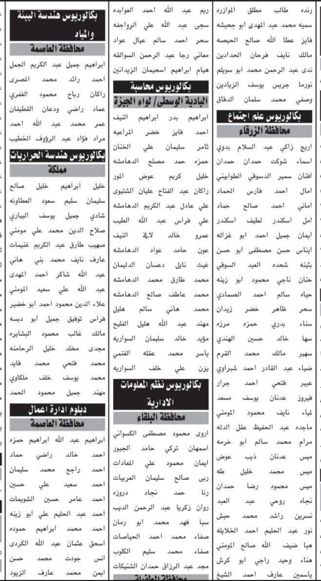 دعت عدد من الدوائر الحكومية، اليوم الأربعاء، المرشحين التالية أسماؤهم إلى التواجد يوم الأربعاء 10/9/2025، الساعة 11 صباحًا، لحضور الاختبار التنافسي الإلكتروني، وفقًا للمجالات التالية:
