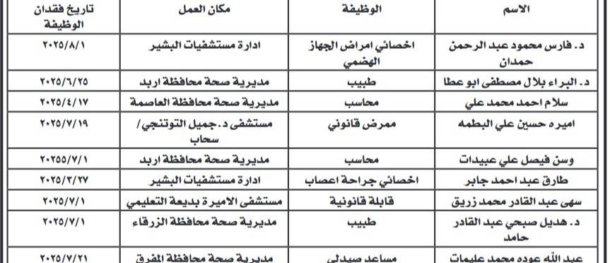 85350-- فاقدون لوظائفهم في وزارة الصحة - أسماء :: صوت عمان الإخباري