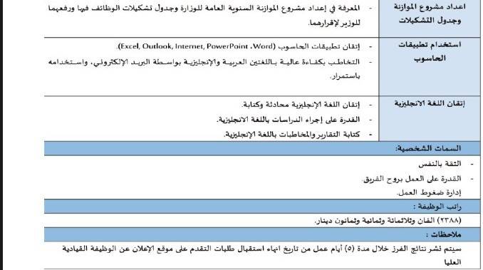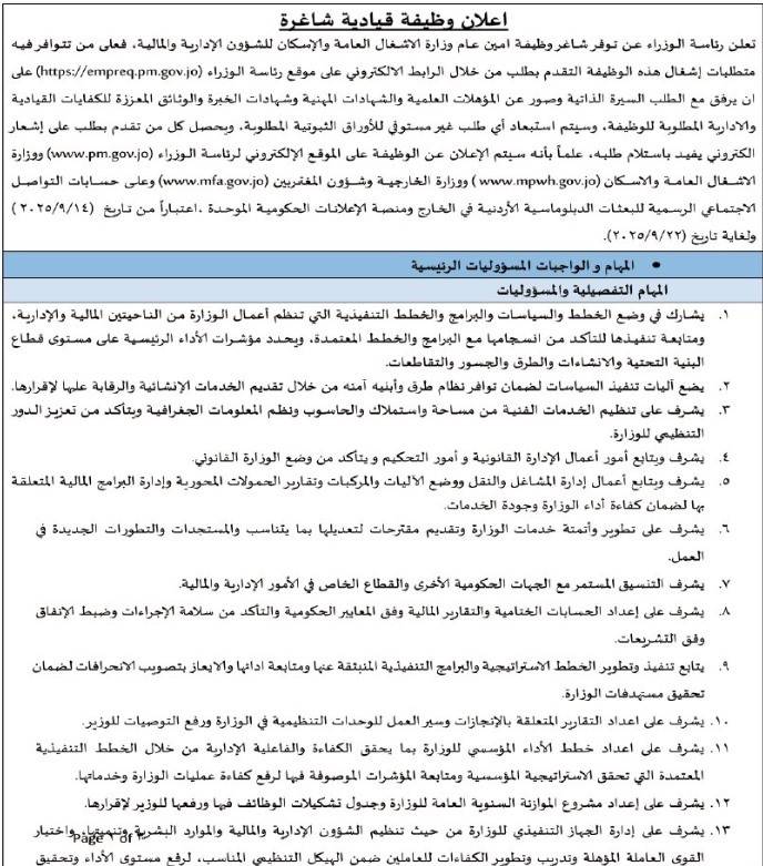 85457-- الحكومة تعلن عن وظيفة قيادية شاغرة - تفاصيل :: صوت عمان الإخباري