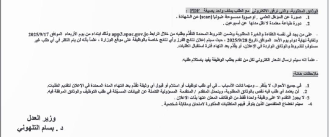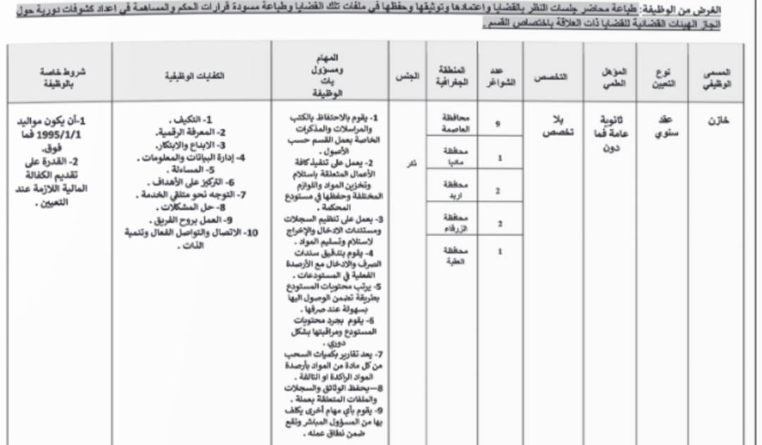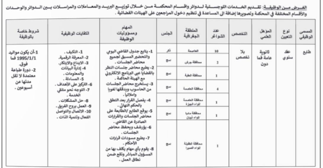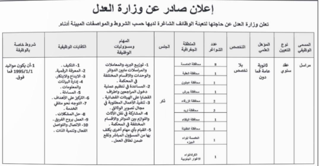 اعلنت وزارة العدل اليوم الثلاثاء عن توفر وظائف شاغرة.