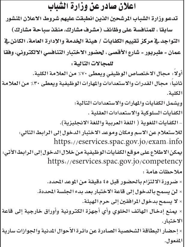 كما دعت وزارة الشباب المرشحين الذين انطبقت عليهم الشروط لحضور الاختبار التنافسي.