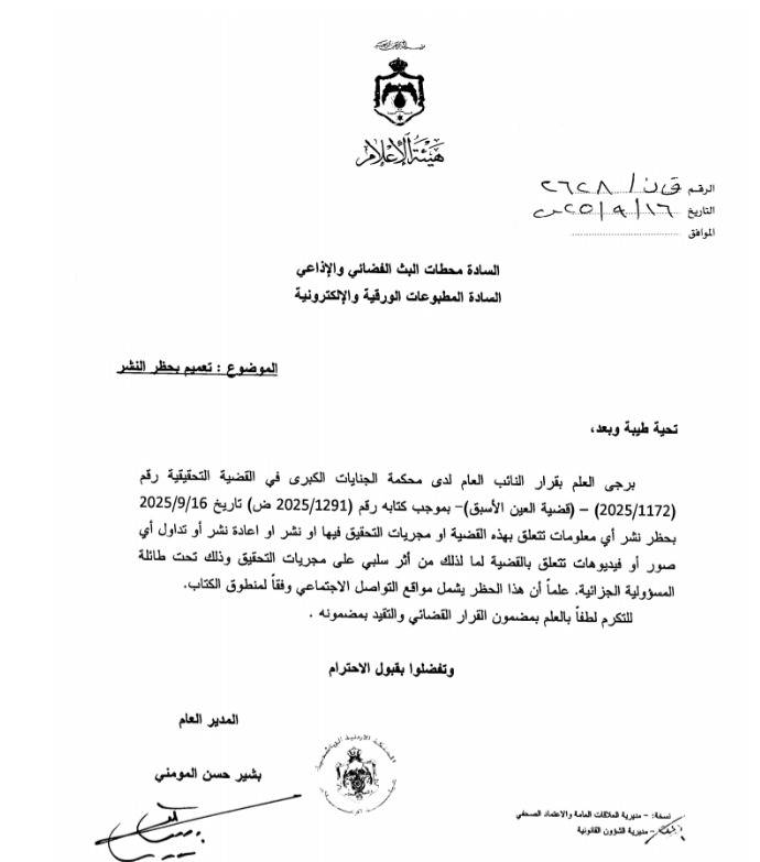 ووفق بيان صادر عن هيئة الإعلام، فإن قرار الحظر يشمل نشر أو إعادة نشر أو تداول أي صور أو فيديوهات تتعلق بالقضية، وذلك بهدف حماية مجريات التحقيق من أي تأثير سلبي.