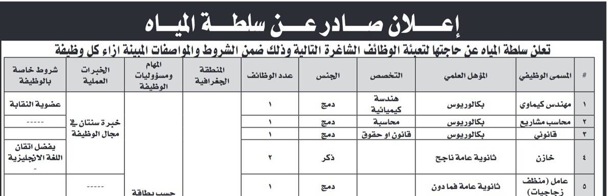 أعلنت مؤسسات حكومية، اليوم الثلاثاء، عن حاجتها لتعبئة وظائف شاغرة