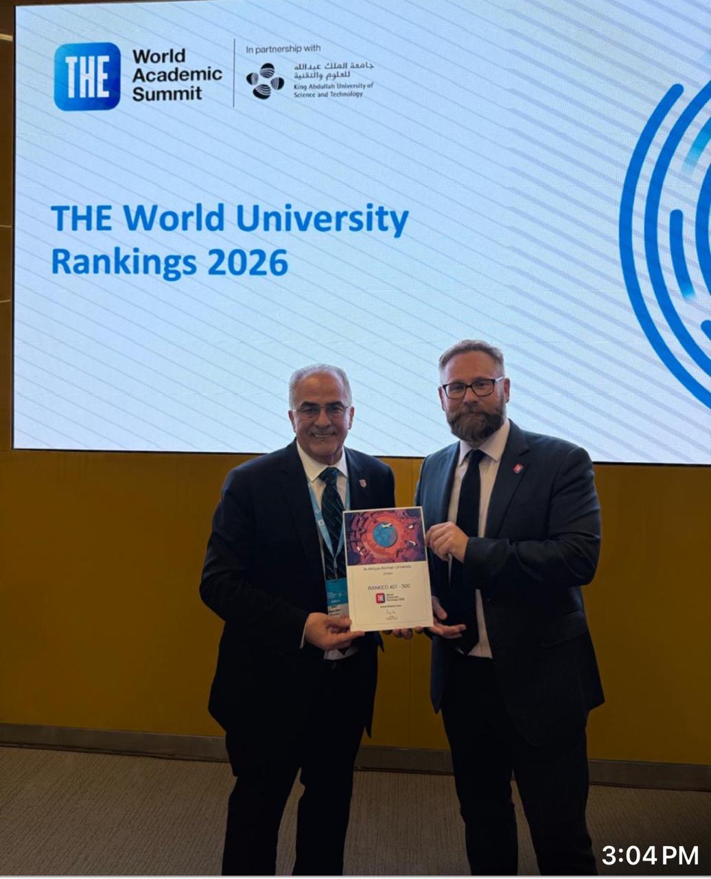 عمان الأهلية تفوز بالمركز الأول على الجامعات الأردنية و 401 -500 عالمياً بتصنيف التايمز العالمي لعام 2026