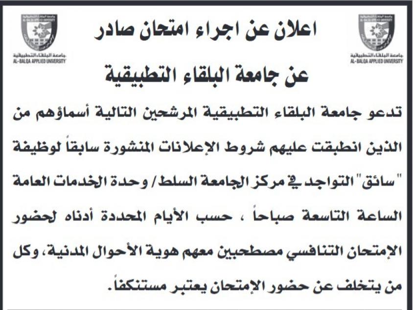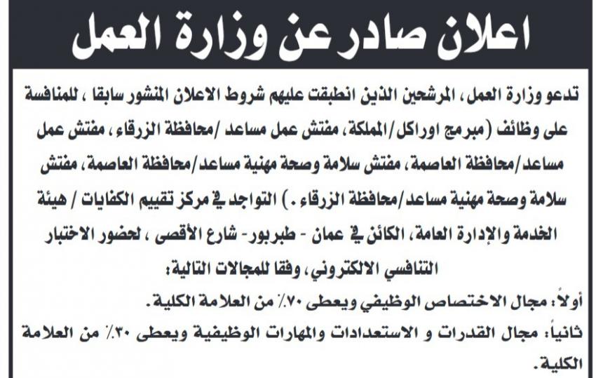 أعلنت عدد من المؤسسات الحكومية في الأردن اليوم الأربعاء عن دعوة مجموعة من المتقدمين الذين انطبقت عليهم شروط الوظائف المعلنة سابقًا، وذلك لاستكمال إجراءات الاختبار التنافسي تمهيدًا لاستكمال مراحل التعيين.