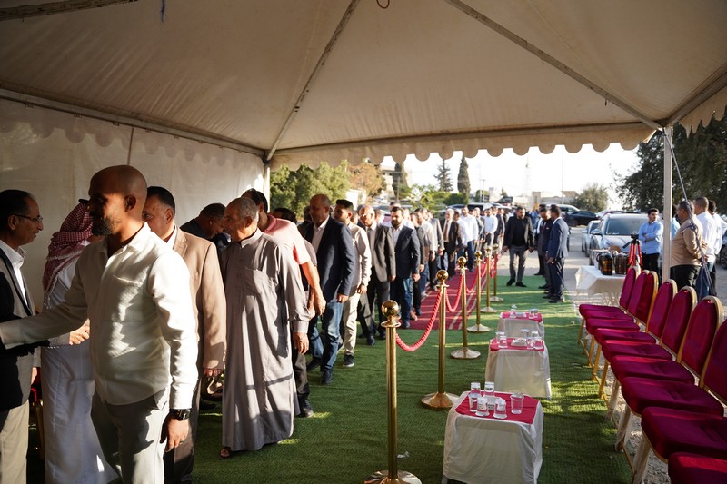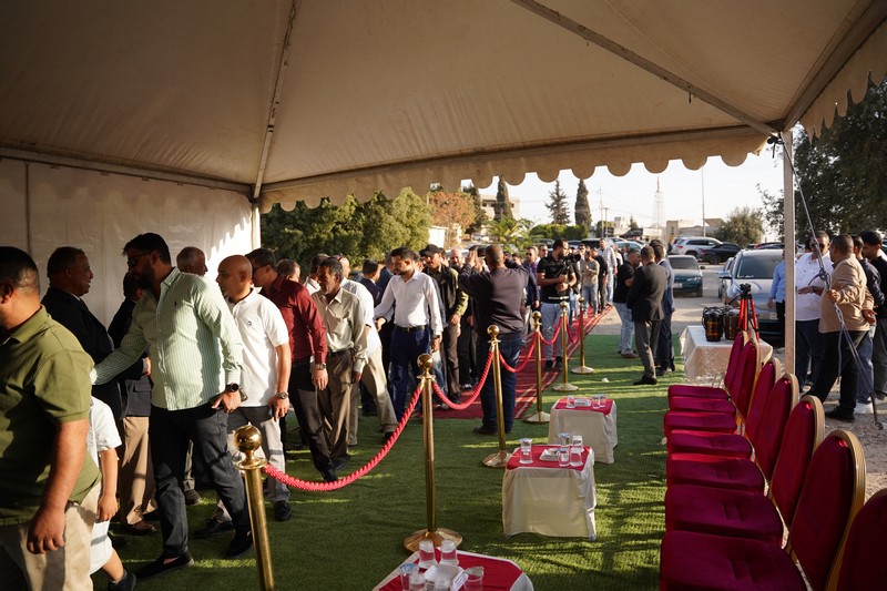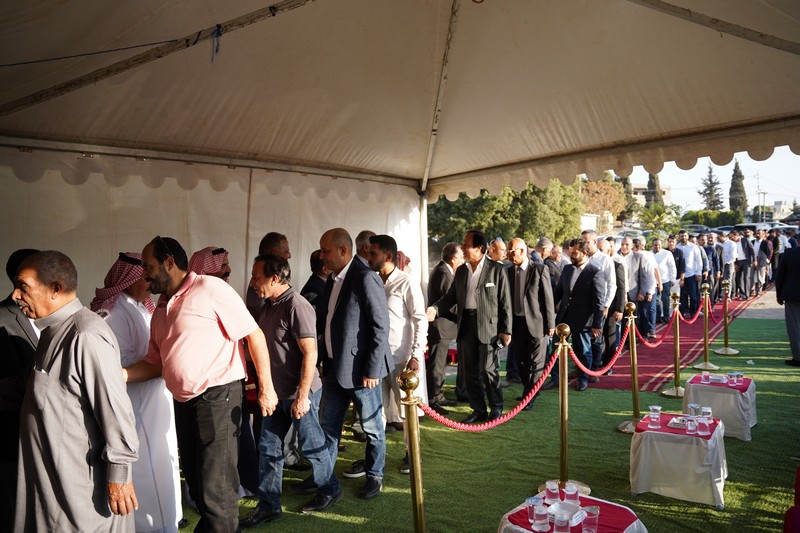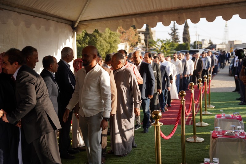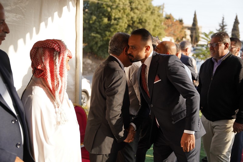 وترأس الجاهة معالي الدكتور محمد يوسف المغاريز – نقيب الفنانين الأردنيين – الذي تقدم بالطلب، فيما تكرم الباشا صالح الشراب بالإجابة بالقبول والإشهار، وسط حضور جمع من الأهل والأقارب والأصدقاء.