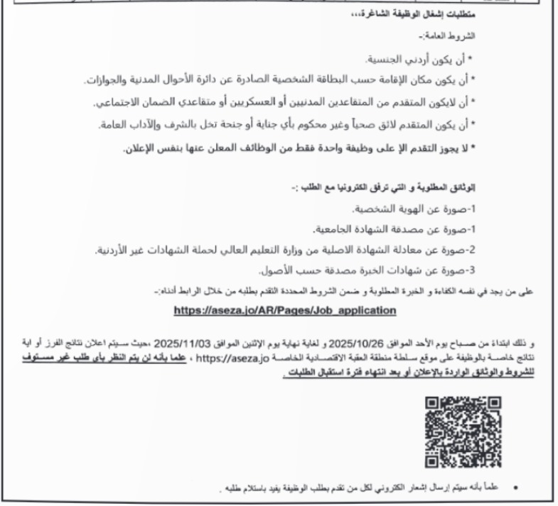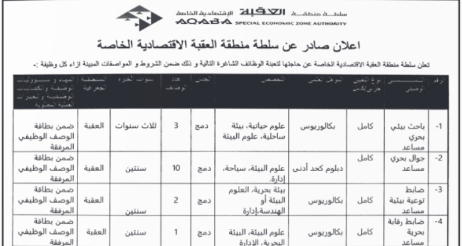 أعلنت سلطة منطقة العقبة الاقتصادية الخاصة اليوم الأحد، عن توفر عدد من الوظائف الشاغرة لديها، ودعت الراغبين بالتقدم إلى الاطلاع على تفاصيل وشروط الوظائف عبر القنوات الرسمية المعتمدة.