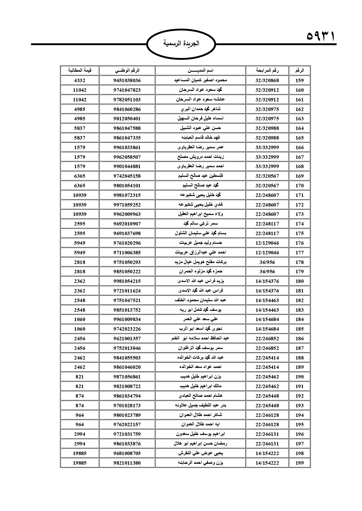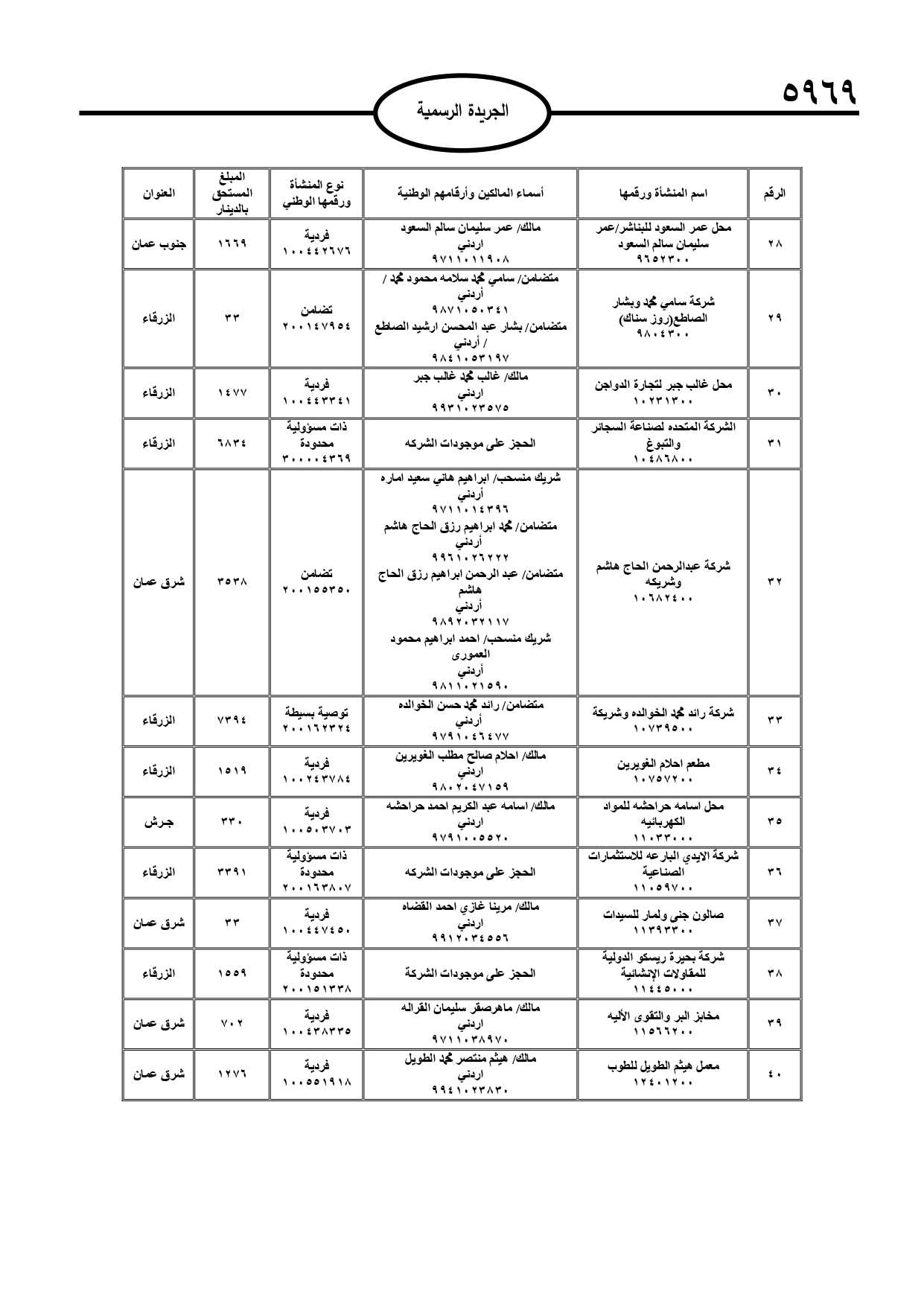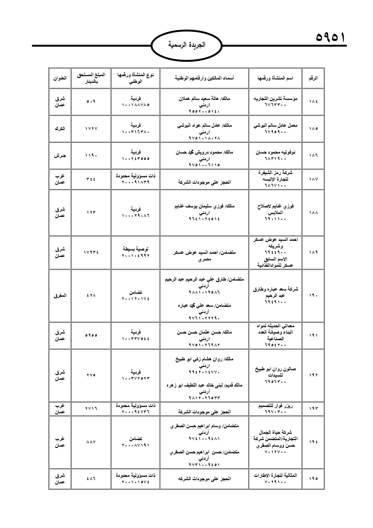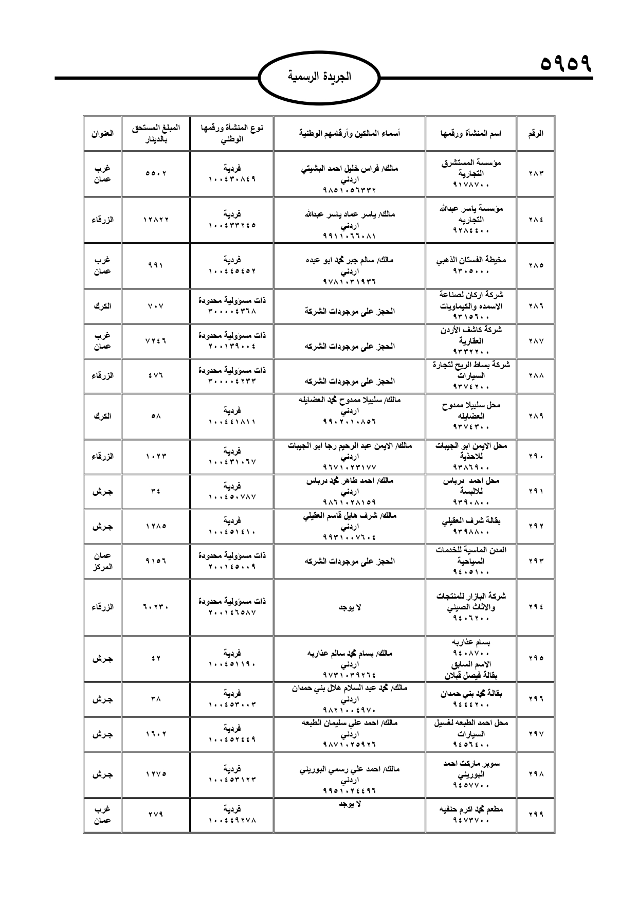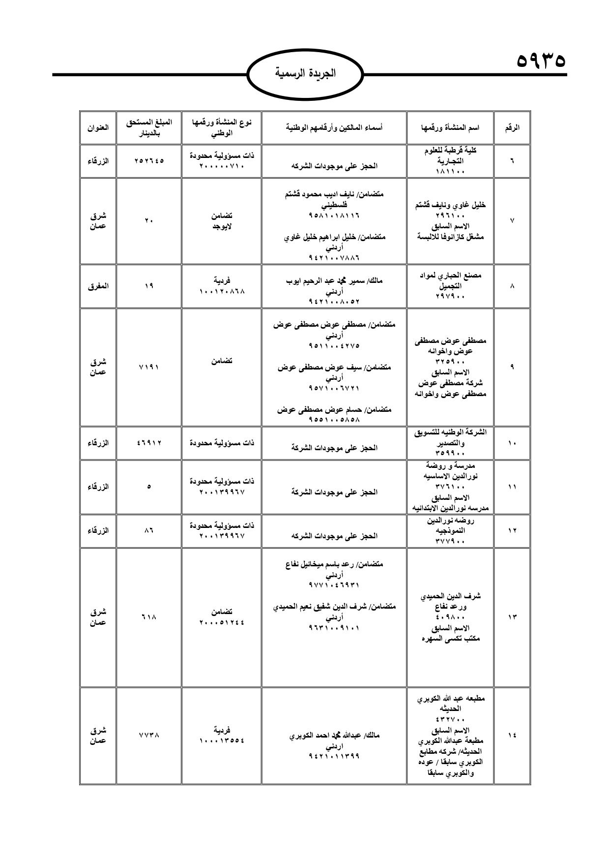 نشرت الجريدة الرسمية في عددها الصادر يوم أمس الخميس، قائمة تضم آلاف الأردنيين المترتبة بحقهم مبالغ مالية لصالح المؤسسة العامة للضمان الاجتماعي ومؤسسة تنمية أموال الأيتام، في خطوة تأتي ضمن الإجراءات القانونية لتحصيل المستحقات المالية المتأخرة.