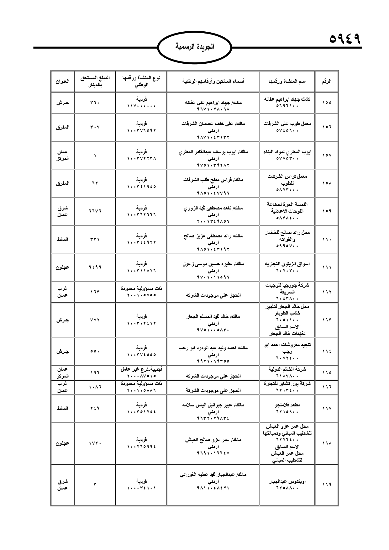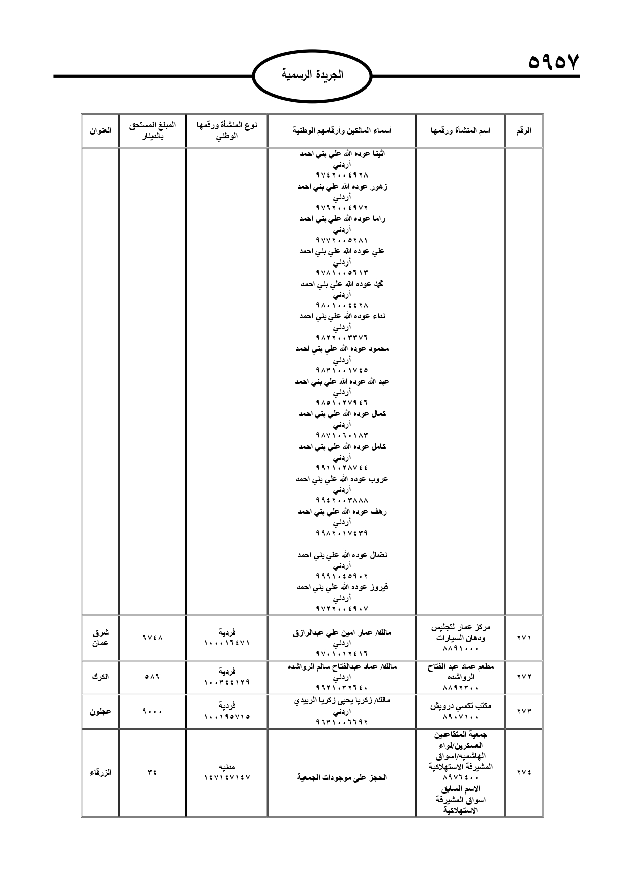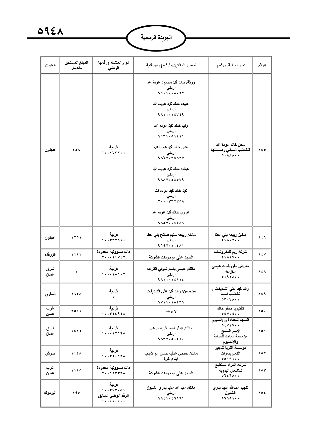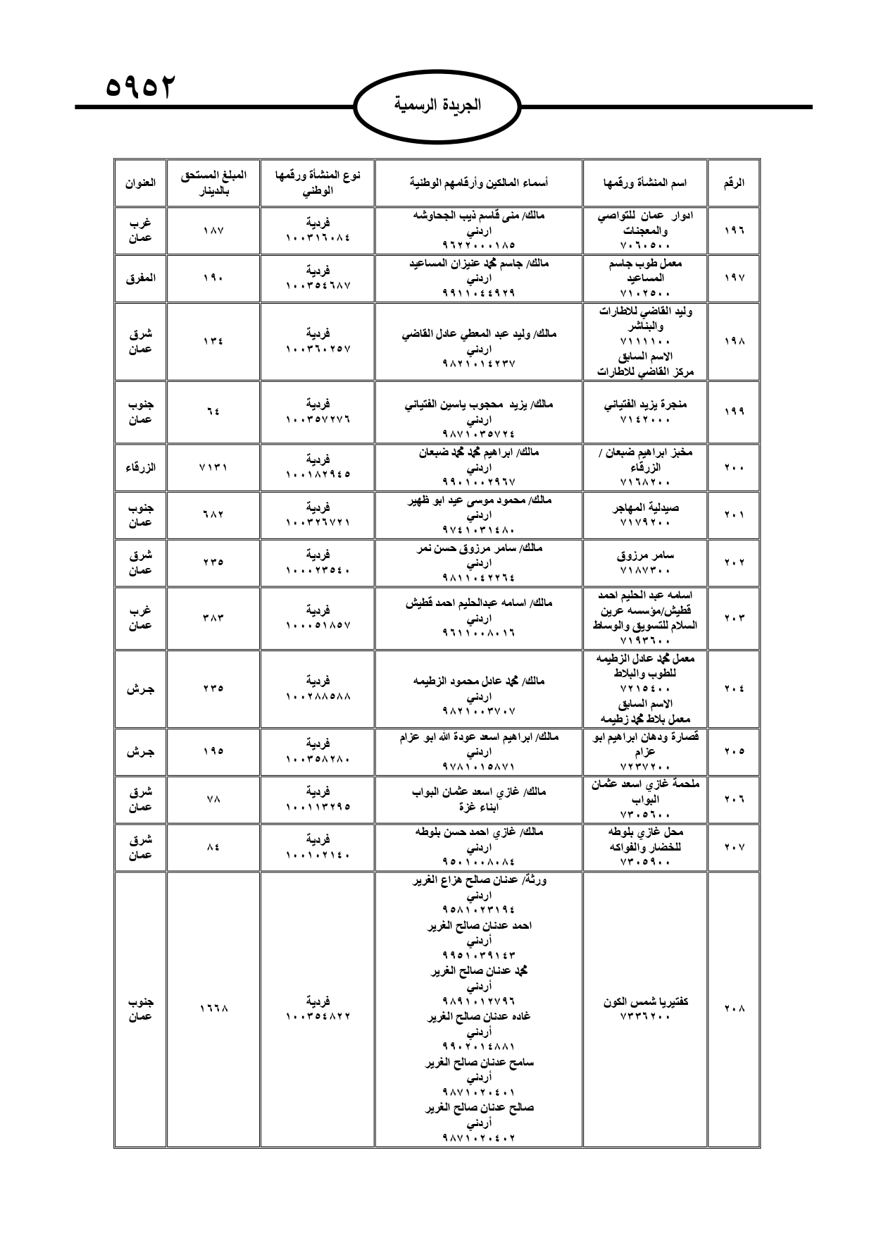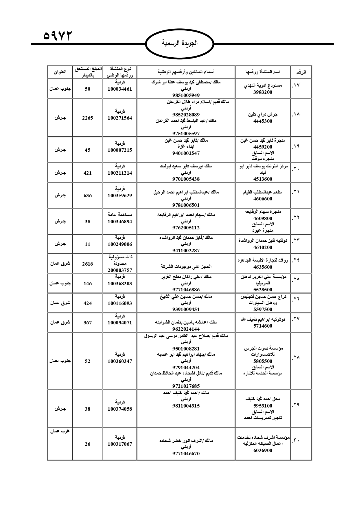 نشرت الجريدة الرسمية في عددها الصادر يوم أمس الخميس، قائمة تضم آلاف الأردنيين المترتبة بحقهم مبالغ مالية لصالح المؤسسة العامة للضمان الاجتماعي ومؤسسة تنمية أموال الأيتام، في خطوة تأتي ضمن الإجراءات القانونية لتحصيل المستحقات المالية المتأخرة.