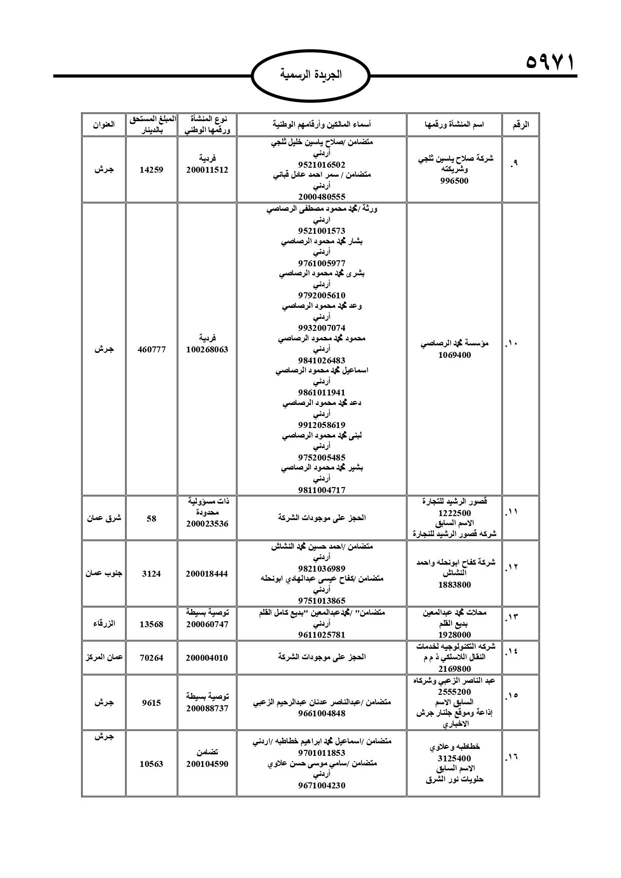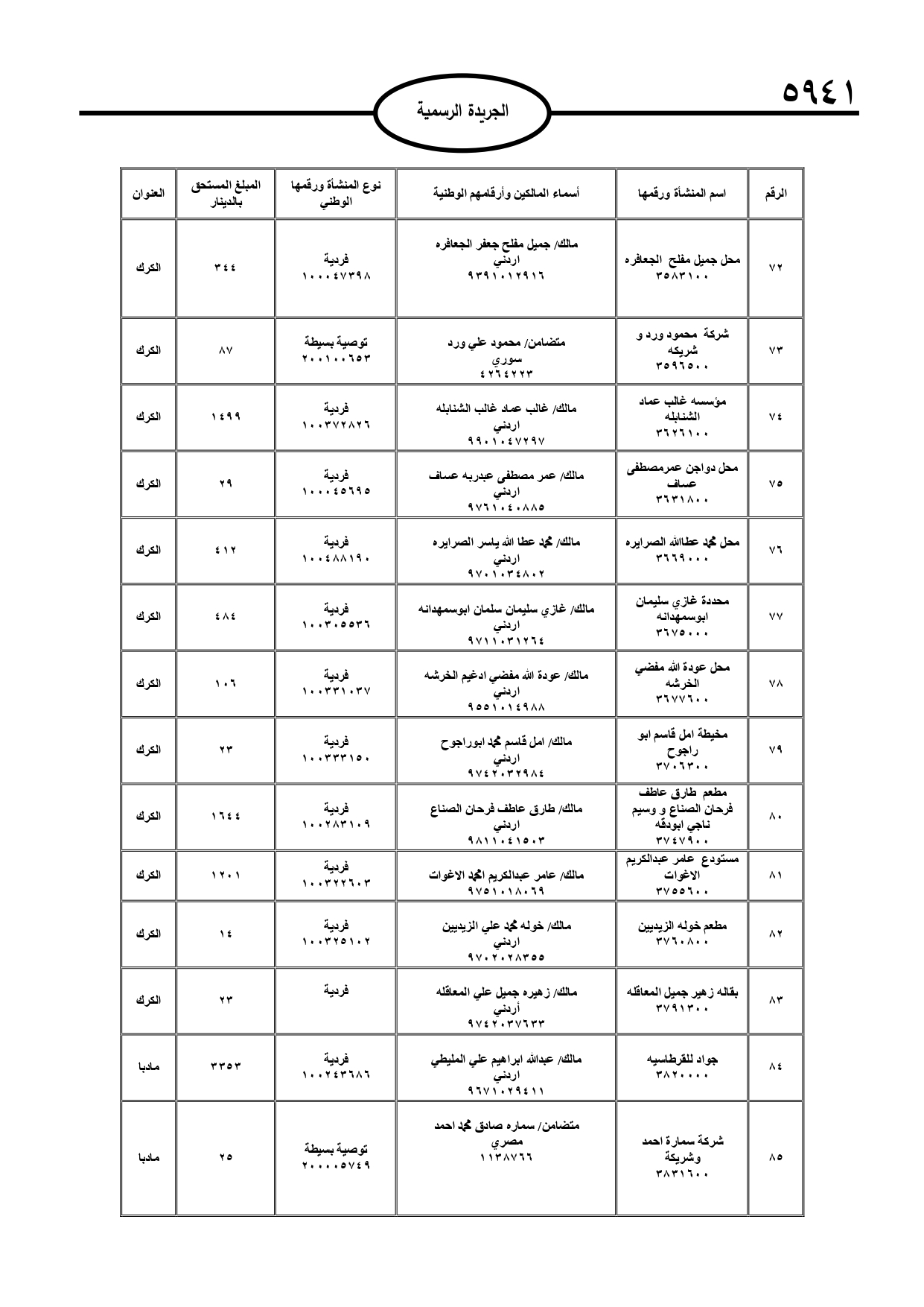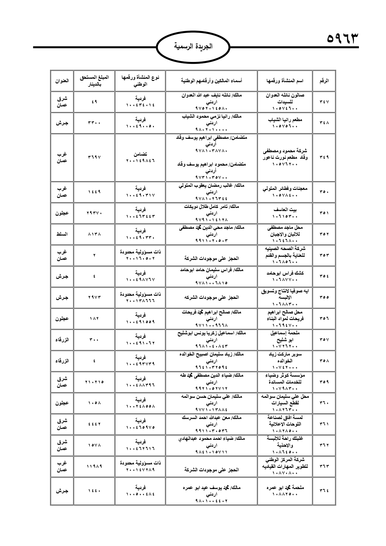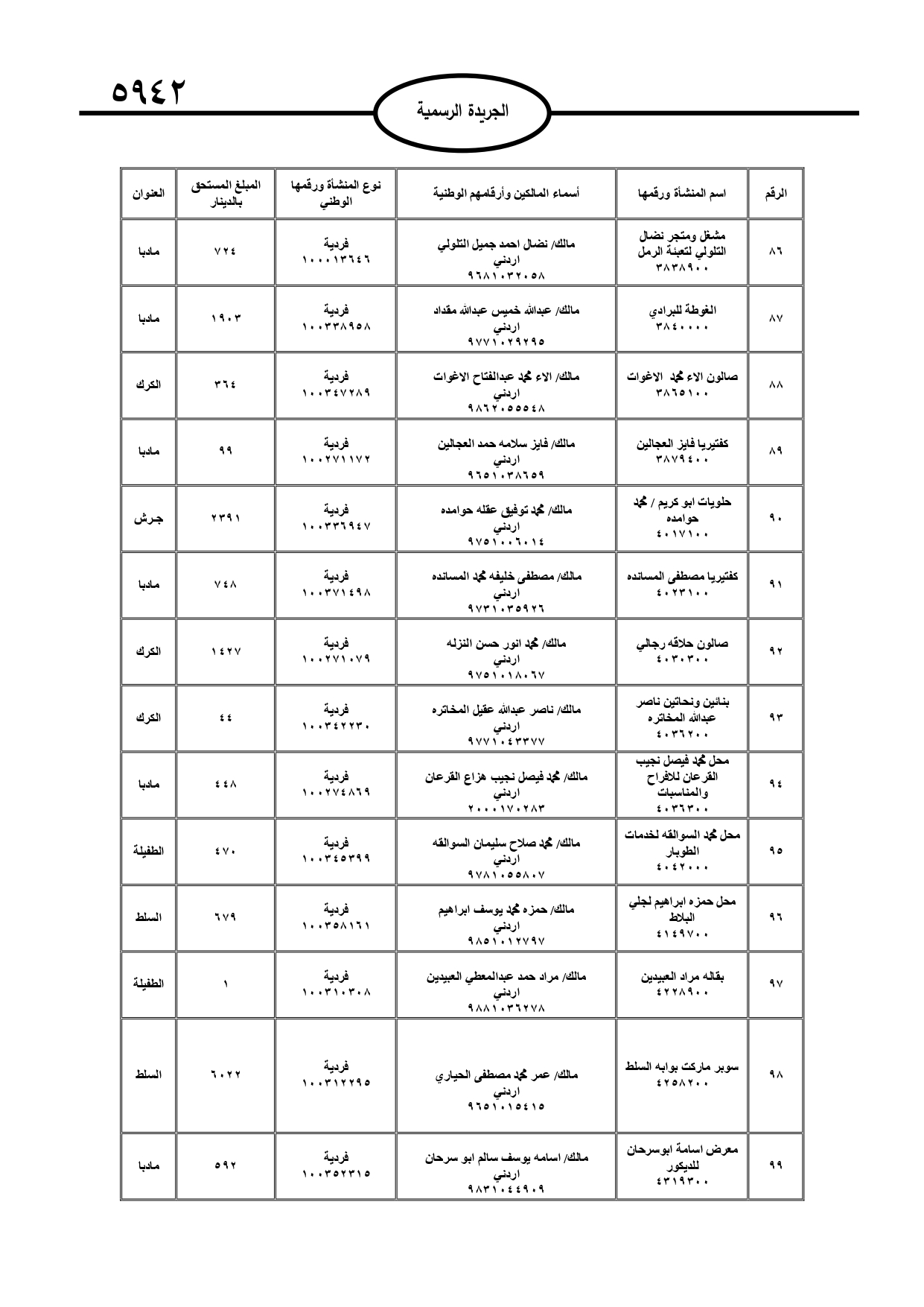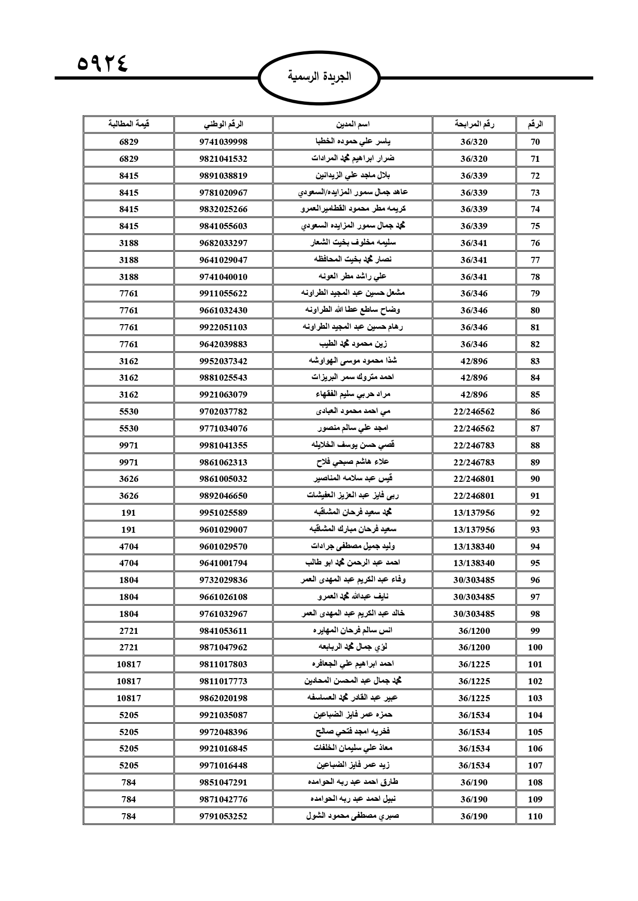 نشرت الجريدة الرسمية في عددها الصادر يوم أمس الخميس، قائمة تضم آلاف الأردنيين المترتبة بحقهم مبالغ مالية لصالح المؤسسة العامة للضمان الاجتماعي ومؤسسة تنمية أموال الأيتام، في خطوة تأتي ضمن الإجراءات القانونية لتحصيل المستحقات المالية المتأخرة.
