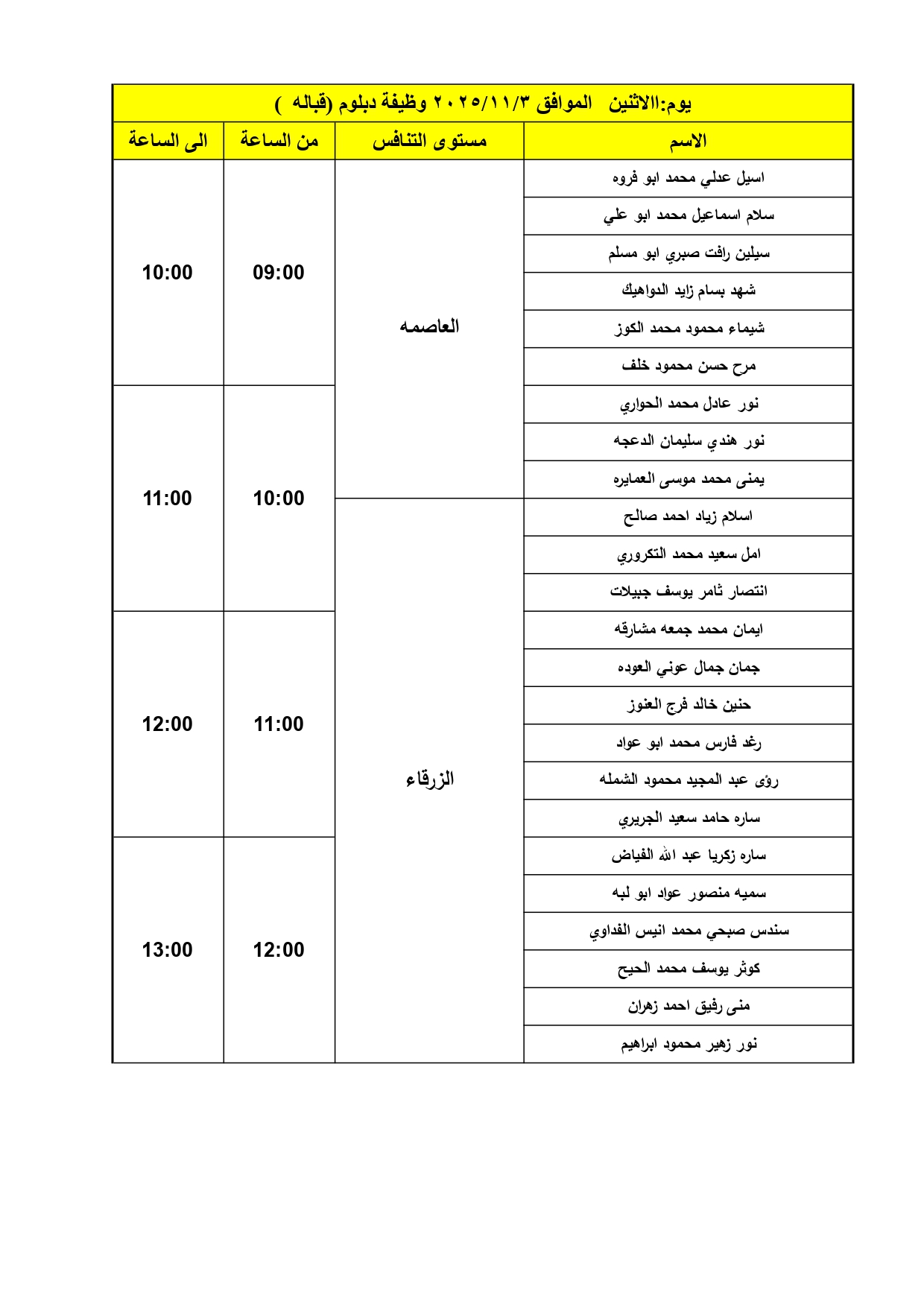 دعت وزارة الصحة المرشحين الواردة أسماؤهم في الملف المرفق، والذين اجتازوا الامتحان التنافسي بنجاح، إلى مراجعة مديرية الموارد البشرية في مبنى الوزارة الكائن في طبربور قرب مستشفى الأمير حمزة، وذلك في الموعد المحدد لإجراء المقابلات الشخصية.
