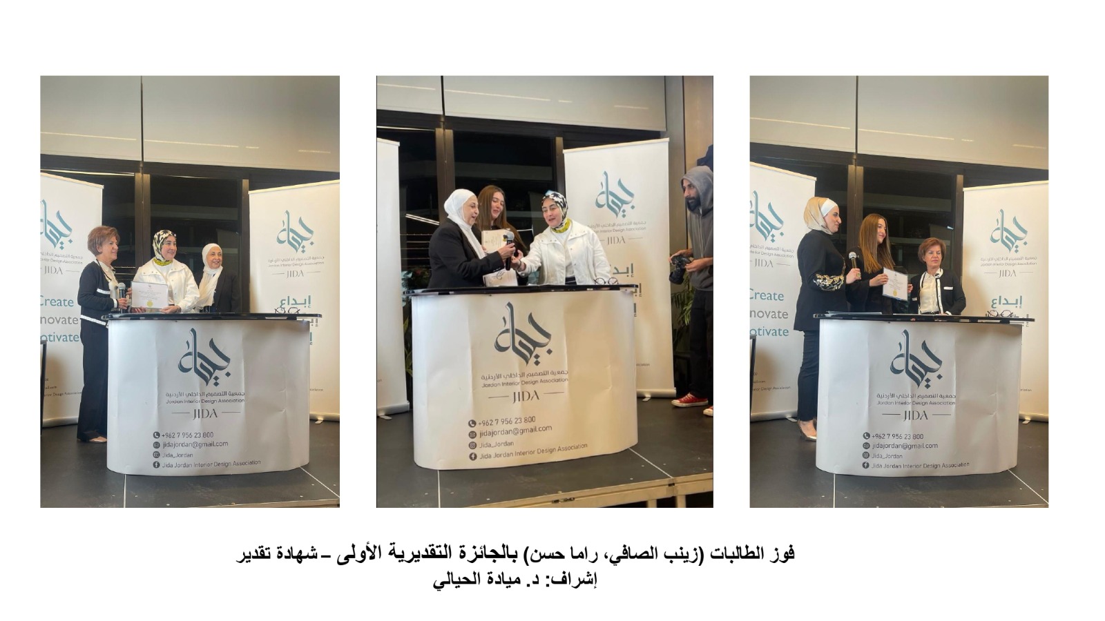 حصدت جامعة البترا ثلاث جوائز في المسابقة السابعة لطلبة التصميم الداخلي في الجامعات الأردنية، التي نظمتها جمعية التصميم الداخلي الأردنية "جيدا"، وسط منافسة قوية شملت تسعة وعشرين مشروعا من ست جامعات.