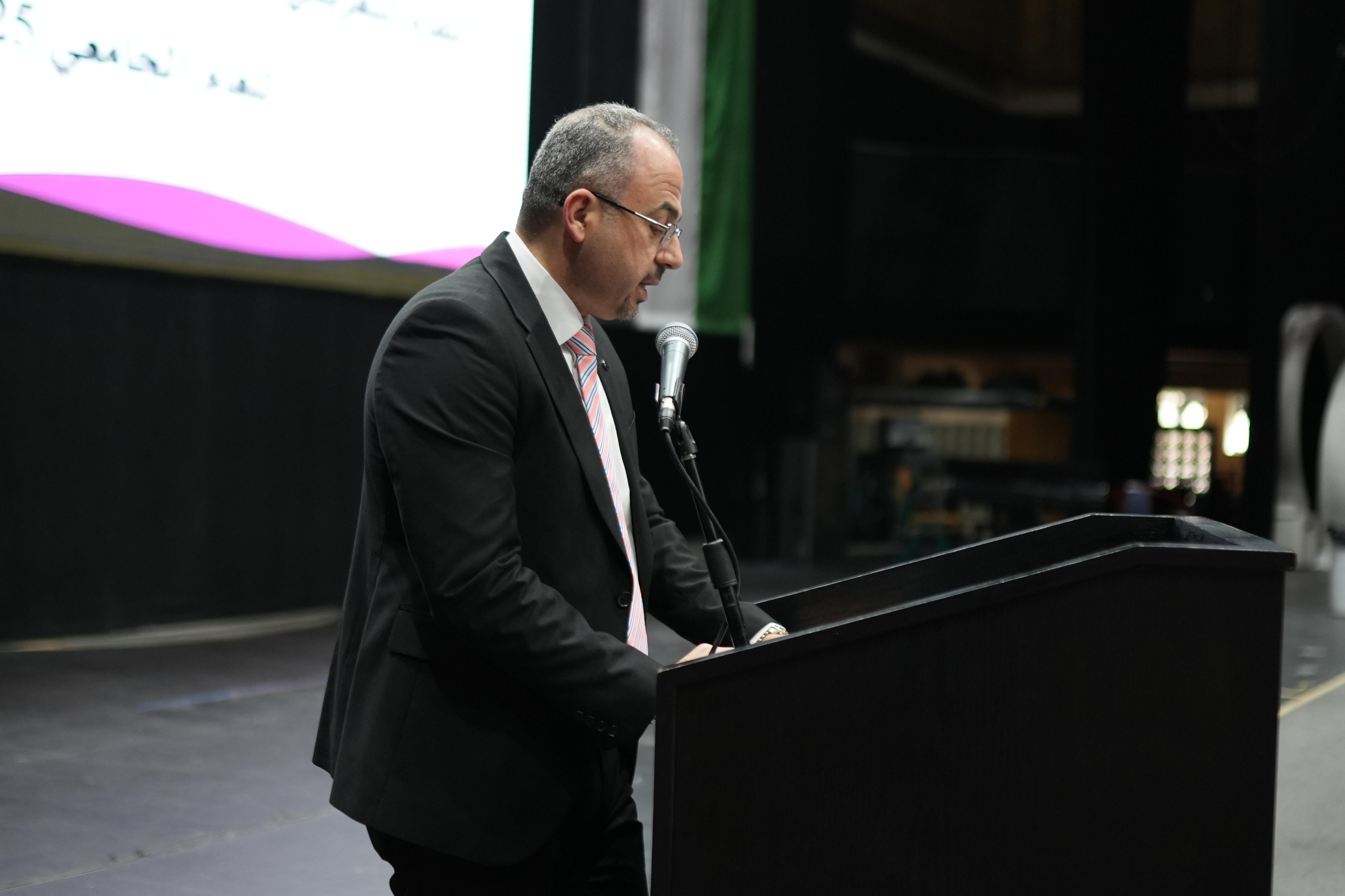 كما ألقى عميد كلية التمريض الأستاذ الدكتور خلدون حمدان كلمة عبّر فيها عن فخره بانضمام نخبة من الطلبة الجدد إلى الكلية، مشيرًا إلى أهمية مهنة التمريض في خدمة المجتمع والرقي بالقطاع الصحي.
