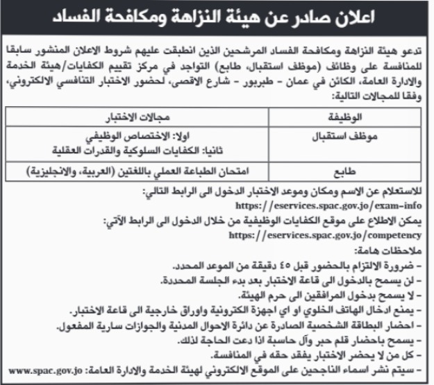 87539-- مؤسسات حكومية تعلن عن شواغر وظيفية :: صوت عمان الإخباري