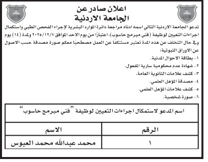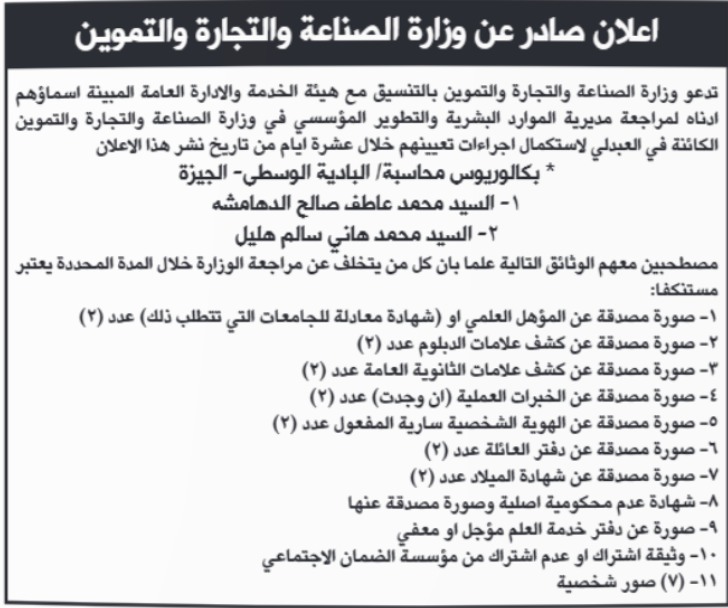 أعلنت عدد من الدوائر الحكومية، اليوم الخميس، عن دعوة المرشحين الواردة أسماؤهم ضمن القوائم الرسمية لاستكمال إجراءات التعيين، وذلك بعد اجتيازهم المراحل المطلوبة وفق التعليمات والأنظمة المتّبعة.
