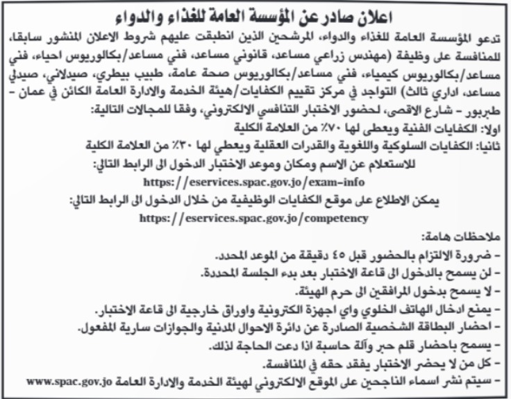 دعت المؤسسة العامة للغذاء والدواء، اليوم، المرشحين الذين انطبقت عليهم شروط الإعلان المنشور سابقًا إلى التقدم لـ الاختبار التنافسي المقرر ضمن مراحل التعيين واستكمال إجراءات المفاضلة بين المتقدمين.