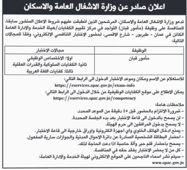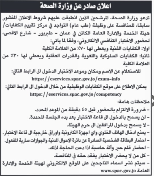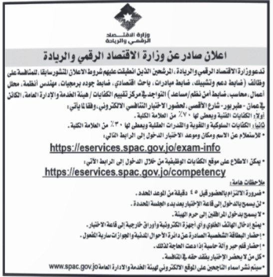 وجّهت عدة دوائر حكومية اليوم الخميس دعوات رسمية إلى المرشحين الذين انطبقت عليهم شروط الإعلان السابق، للحضور إلى الاختبار التنافسي المقرر ضمن مراحل التعيين واستكمال إجراءات المفاضلة بين المتقدمين.