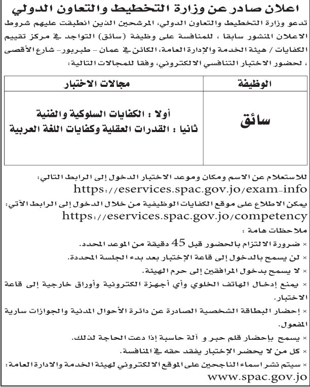 دعت دوائر حكومية، اليوم الثلاثاء، المرشحين الذين انطبقت عليهم شروط الإعلان المنشور سابقًا إلى التقدّم للامتحان التنافسي، ضمن الإجراءات المعتمدة لاستكمال مراحل التوظيف وفق الأسس المعمول بها.