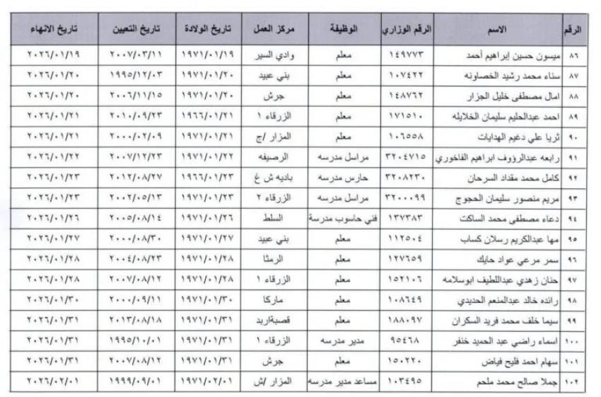 وجاء قرار الوزير استنادا لأحكام المادة (100/أ) من نظام إدارة الموارد البشرية في القطاع العام رقم 33 لسنة 2024 وتعديلاته، وبناء على تنسيب الأمين العام للشؤون الإدارية والمالية.