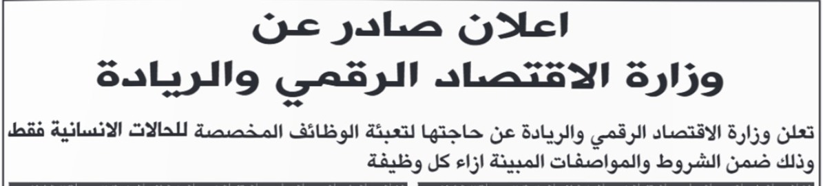 إعلان مهم من وزارة الاقتصاد الرقمي للباحثين عن عمل