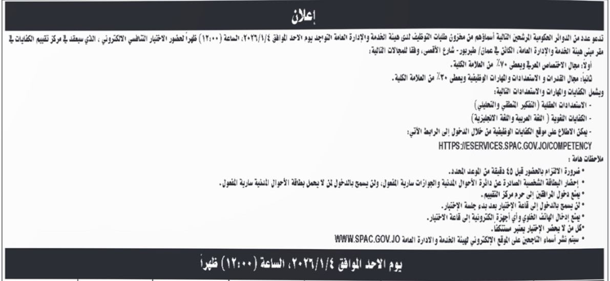 وأكدت الدوائر المعنية أن الدعوة تشمل الأسماء التي سيتم الإعلان عنها رسميًا، داعية المرشحين إلى الالتزام بالمواعيد المحددة ومراجعة أماكن عقد الاختبارات وفق التعليمات الصادرة، وإحضار الوثائق المطلوبة لضمان سير العملية بسلاسة.