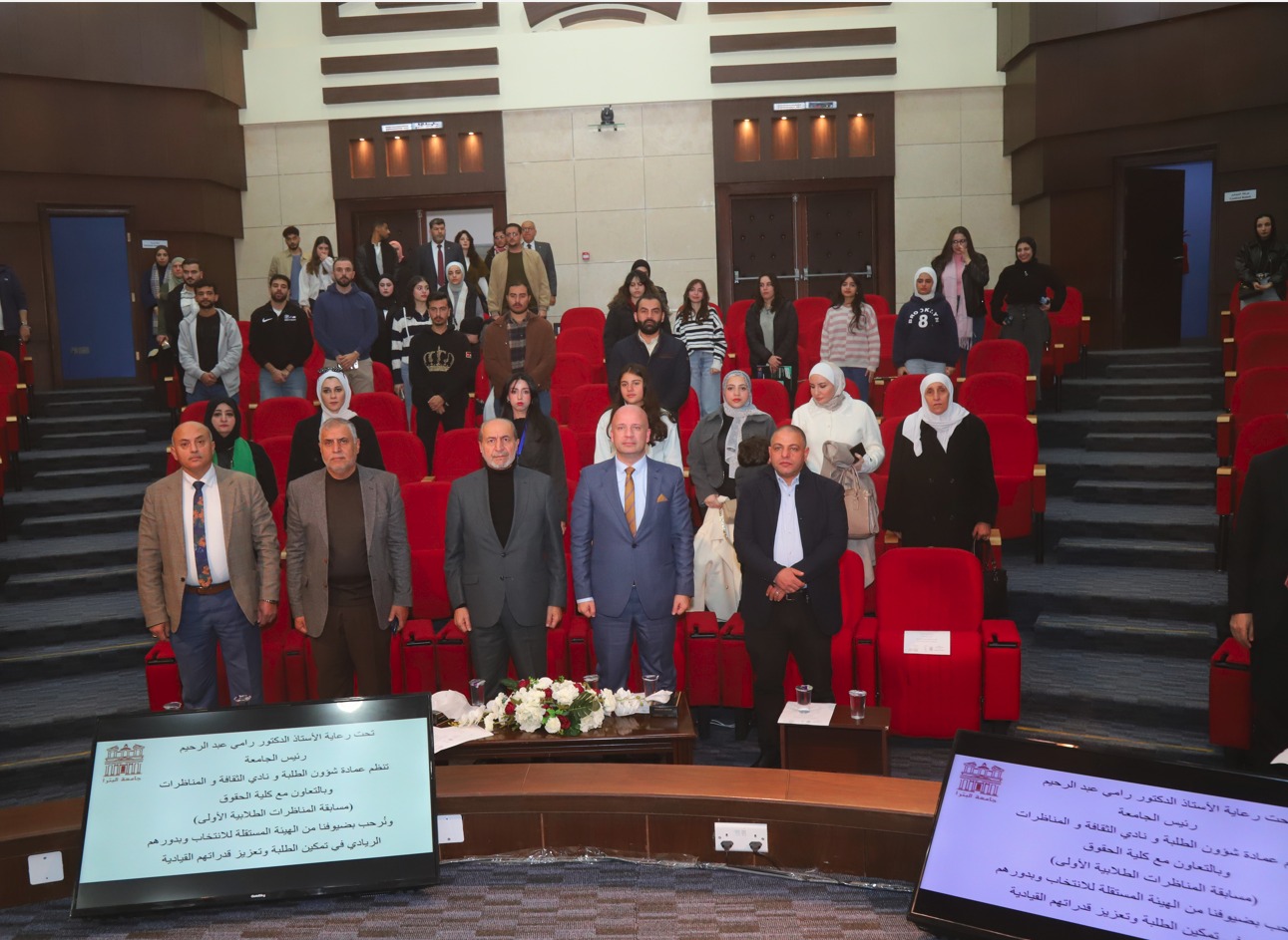 وأشرف على مسابقة المناظرات الطلابية عضو الهيئة التدريسية في كلية الحقوق، الأستاذ الدكتور عمر أعمر، حيث أسهمت الفعالية في تطوير مهارات النقاش والحوار لدى الطلبة.