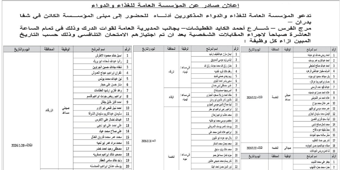 وأوضحت الجهات المعنية أن هذه الدعوة تأتي ضمن مراحل التقييم النهائية، داعيةً المشمولين بالإعلان إلى الالتزام بالمواعيد المحددة، وإحضار الوثائق المطلوبة، ومتابعة الإعلانات الرسمية الصادرة عن الجهة المختصة لمعرفة تفاصيل المكان والزمان.