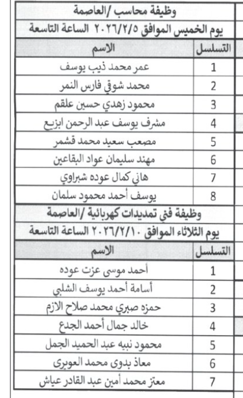 وبينت الجهات المعنية ان دعوة المتقدمين جاءت وفق اسس ومعايير محددة، وبما ينسجم مع تعليمات التوظيف المعمول بها، مؤكدة ان مواعيد المقابلات والامتحانات جرى تحديدها مسبقا، وعلى المتقدمين الالتزام بالحضور في الاوقات والاماكن المعلنة.