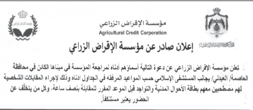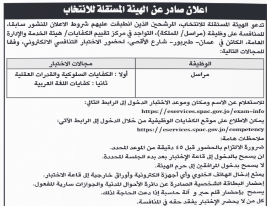 دعت وزارات ومؤسسات حكومية عددا من المتقدمين لشغل وظائف شاغرة الى اجراء المقابلات الشخصية والتقدم لامتحانات الكفايات، وذلك ضمن اجراءات الاستكمال والمفاضلة المعتمدة لشغل هذه الوظائف.
