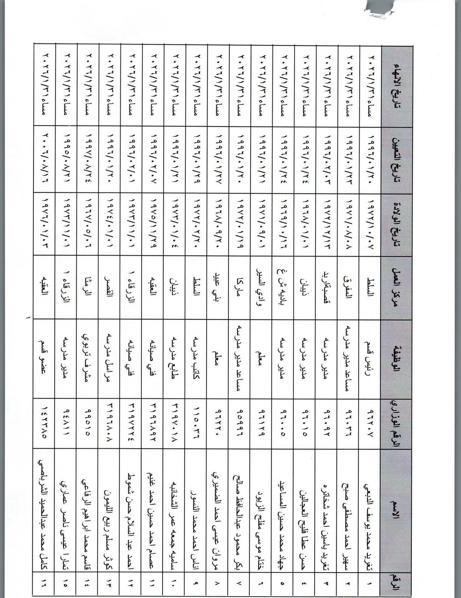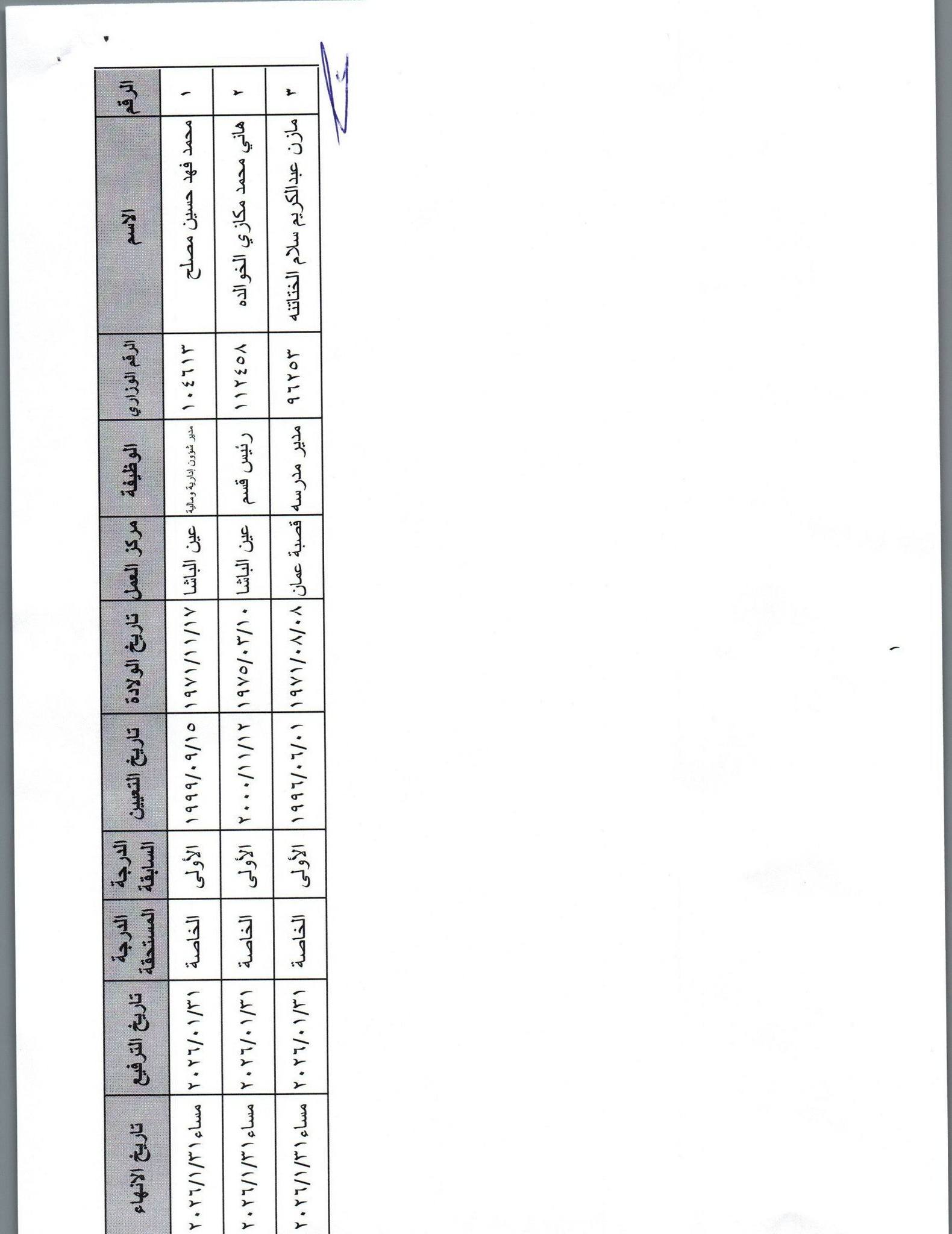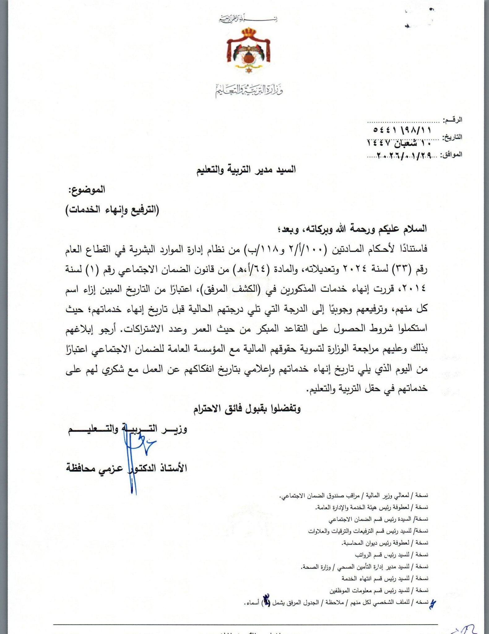 وبموجب القرار، دعا محافظة مديري التربية والتعليم في مختلف المديريات الى ابلاغ الموظفين المشمولين بالترفيع، والعمل على استدعائهم الى مقر الوزارة لاستكمال اجراءات التسوية المالية وضمان صرف كامل حقوقهم وفقا للانظمة والتعليمات النافذة.