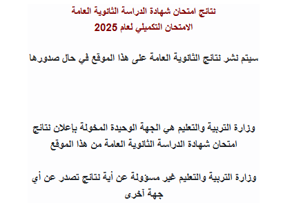 وبينت وزارة التربية والتعليم ان رابط نتائج التوجيهي سيكون الوسيلة الوحيدة المعتمدة للاستعلام عن نتائج التوجيهي باستخدام رقم الجلوس فقط، مشددة على ضرورة تجاهل اي روابط غير رسمية او صفحات تنتحل صفة الوزارة وتروج لمعلومات غير دقيقة حول نتائج التوجيهي.