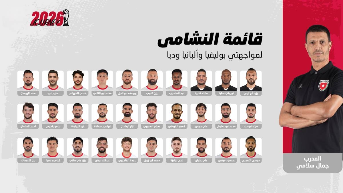 سلامي يعلن قائمة النشامى لمواجهتي بوليفيا وألبانيا