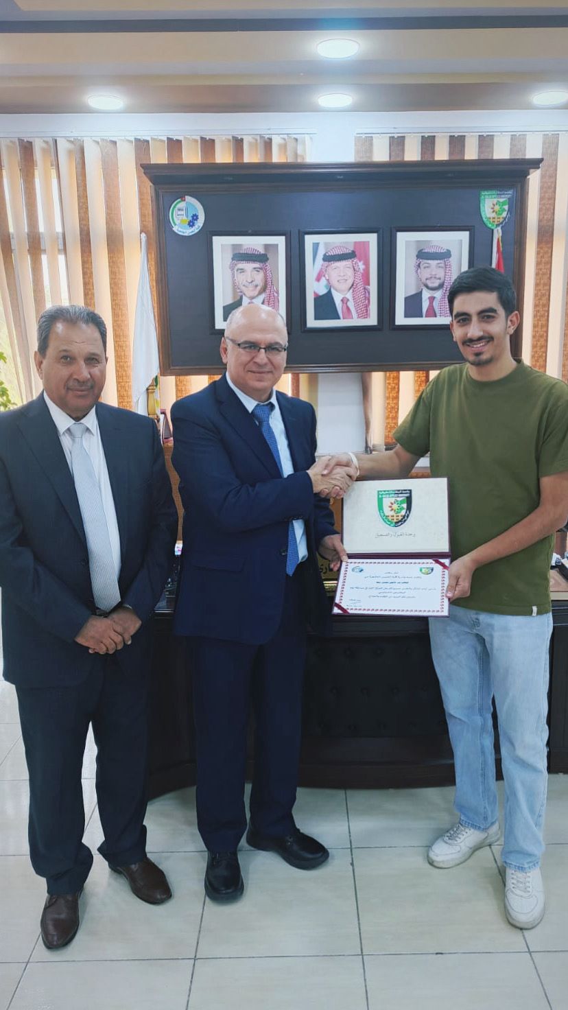 كلية الحصن الجامعية في جامعة البلقاء التطبيقية تكرم الطالب نمر الزيود لفوزه بالذهبية في مسابقة يوم المخترعين الإندونيسي