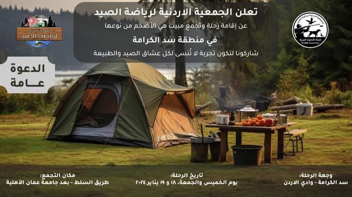 مخيم وتجمع لصيادي الجمعية الأردنية لرياضة الصيد في منطقة سد الكرامة .