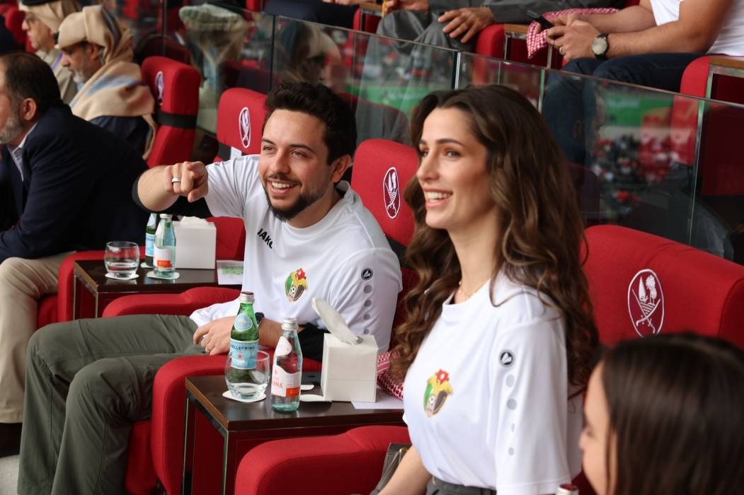ولي العهد الأمير الحسين والأميرة رجوة حاضرين لدعم النشامى من أرض الملعب