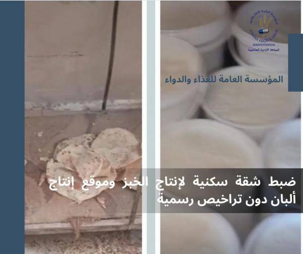 الأردن: ضبط شقة سكنية يتم بداخلها انتاج الخبز واللبن