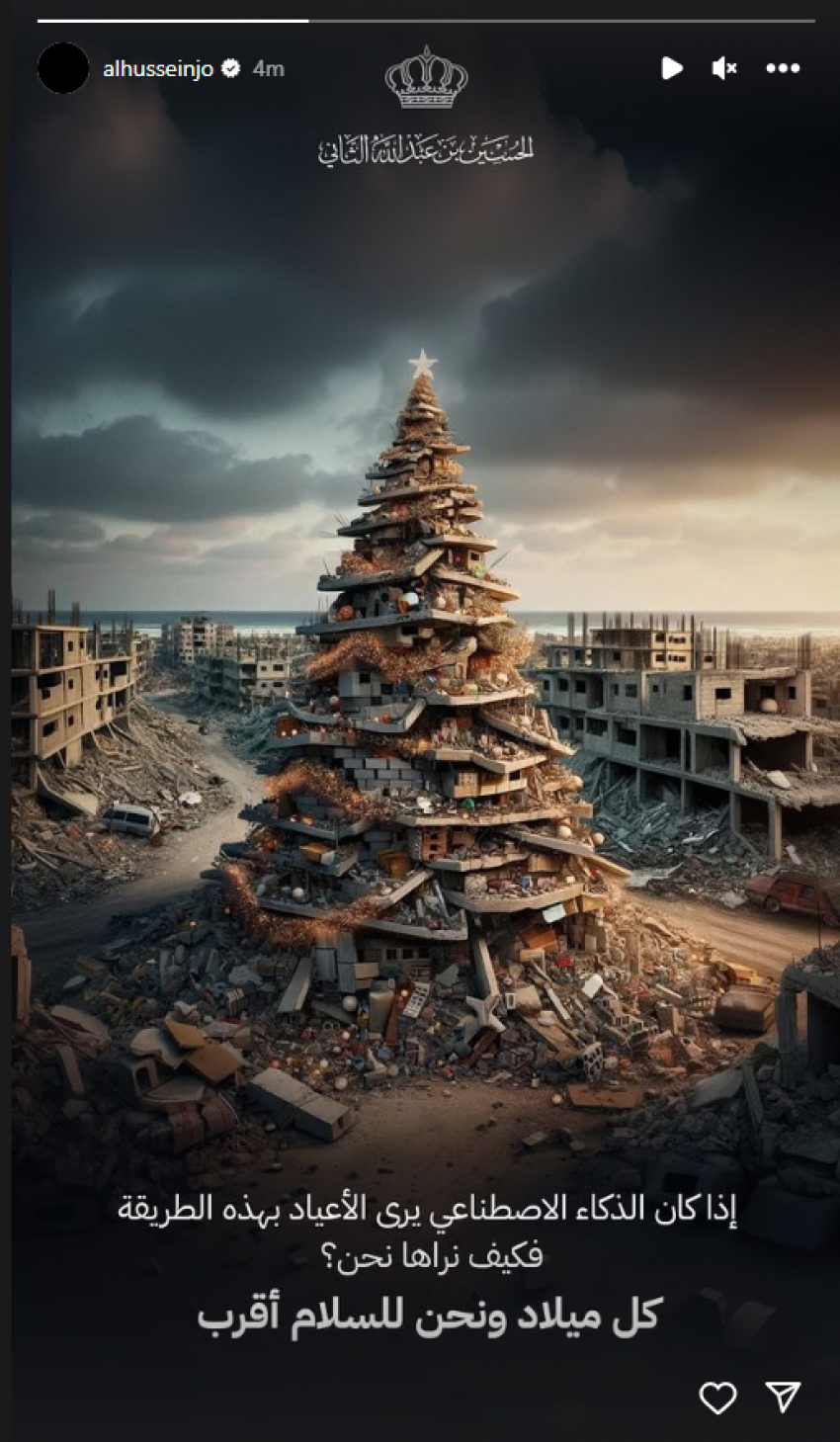 الملك: أمنياتنا بالسلام لإخواننا وأخواتنا المسيحيين في فلسطين والعالم