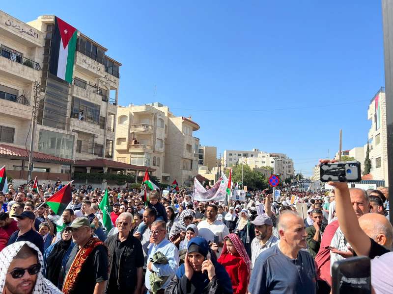 حشود من الأردنيين أمام الكالوتي تندد بجرائم الاحتلال على غزة