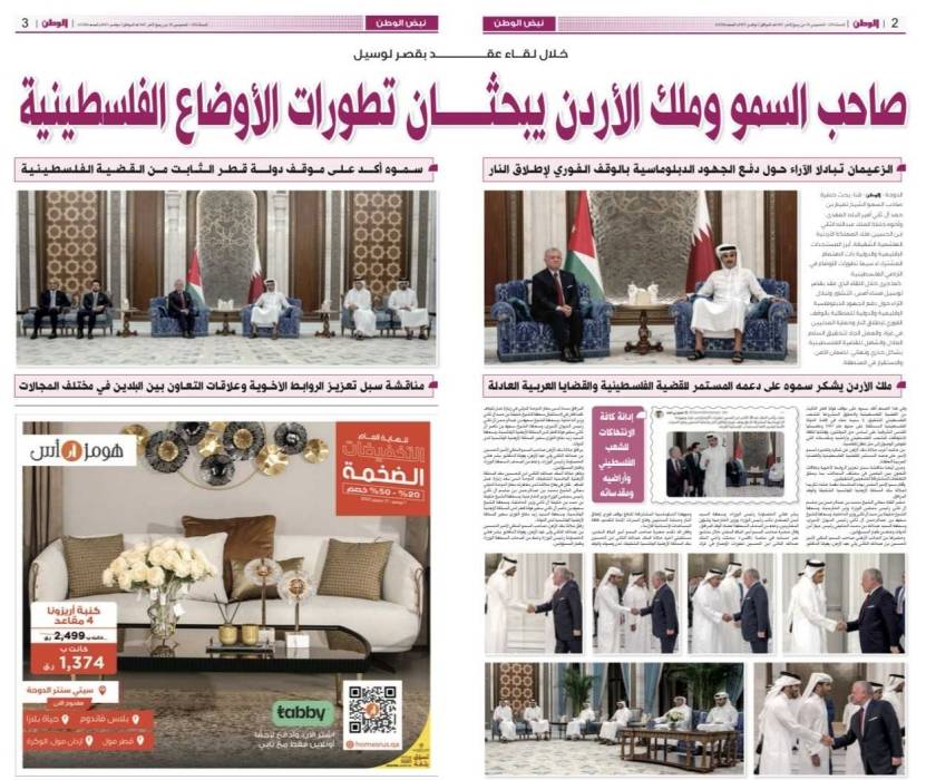 الملك والشيخ تميم يؤكدان: الحل العسكري أو الأمني للقضية الفلسطينية لن ينجح