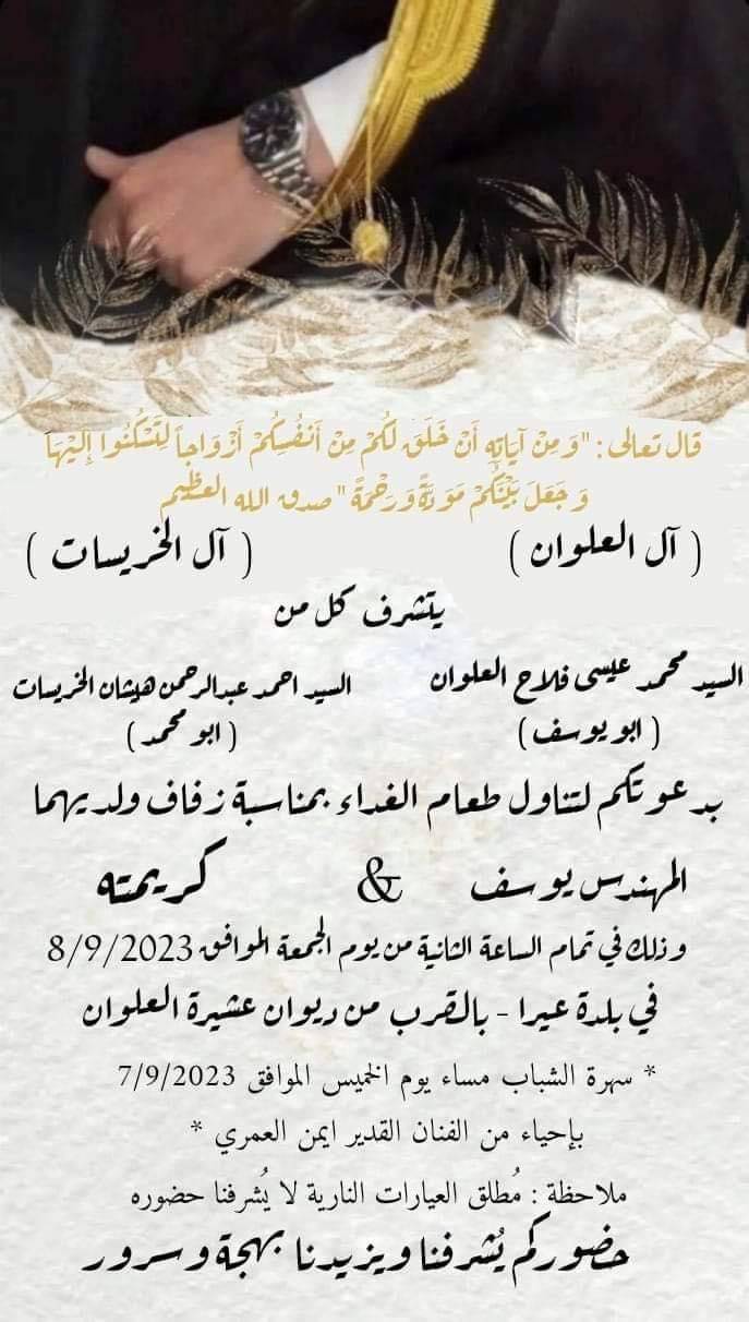عريس أردني يكتب في بطاقة زفافه: لا يشرفنا حضور مطلق العيارات النارية