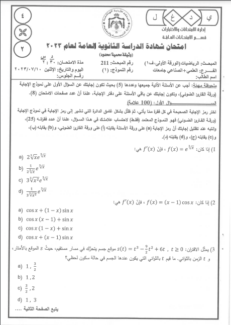 وزارة التربية تنشر أسئلة امتحان الرياضيات