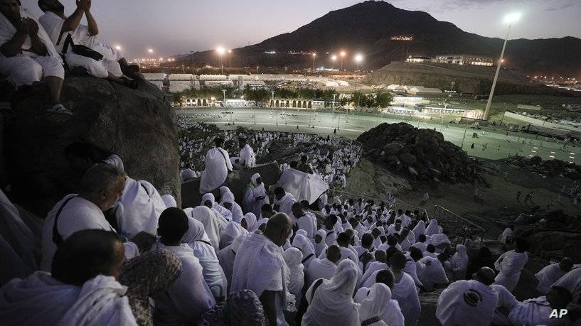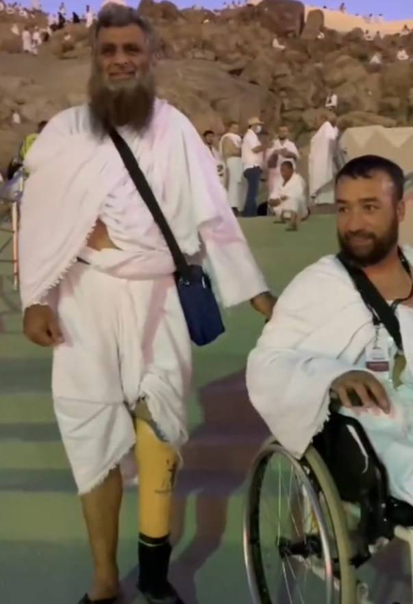 حاج من ذوي الإعاقة يساعد آخر في الصعود إلى عرفات -صور