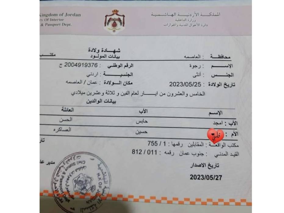 احتفالا بزفاف ولي العهد.. أردني يطلق اسم "رجوة" على ابنته
