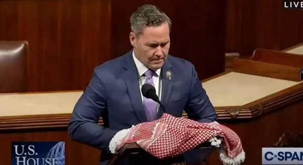 نائب أميركي يهنئ بعيد الاستقلال ويضع الشماغ الأردني أمامه في المجلس - فيديو
