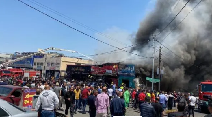 بيان أمني حول حريق ضخم في محلات قطع سيارات في عمان