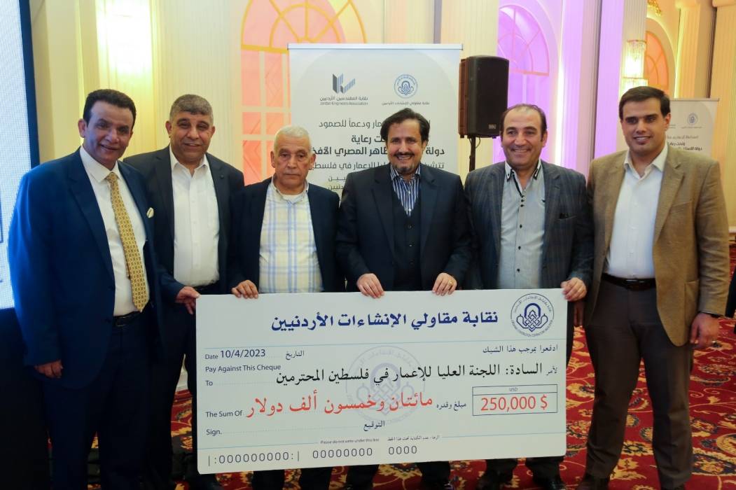 "الـمـقـاولــون" يتبرعون بمبلغ "ربع مليون دولآر" للإعمار في فلسطين
