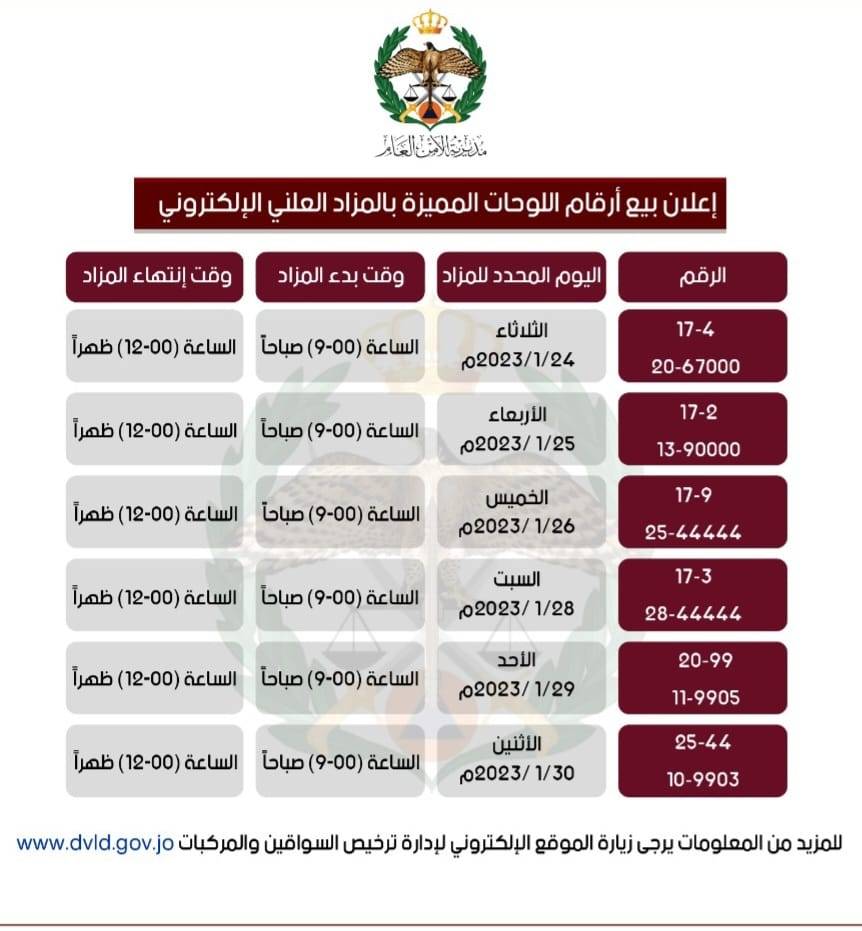 بيع أرقام لوحات مميزة بالمزاد العلني الالكتروني