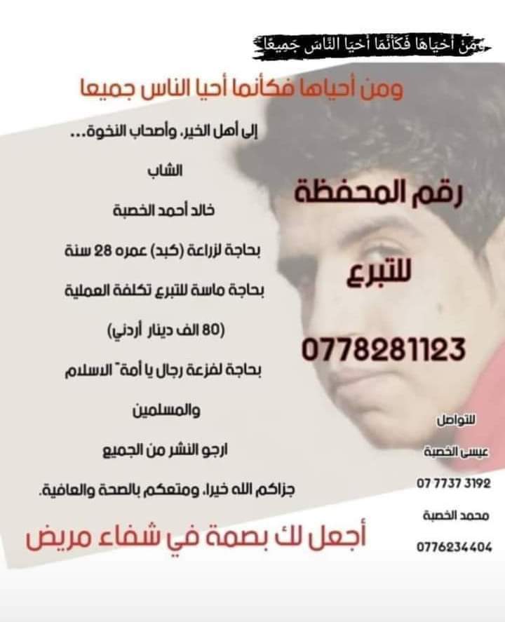 مناشدة لمساعدة المريض خالد الخصبة من الطفيلة